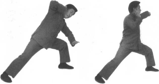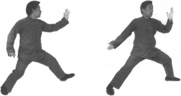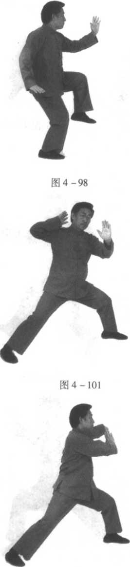 (图4-98 至 106)口令、动作与第八势“斜行”相同。图 4-104图 4一99图 4-100图 4 - 102图 4 -105图 4 -103图 4-106第十二势搂膝(图4 - 107至110) 口令、动作与第九势“搂膝”相同。图 4一107 图 4 -108 图 4 -109 图 4-110第十三势上三步(图4-111 至 118)口令、动作与第十势“上三步”相同。图 4-111图4 一 113图4-112图4-116图4-118图4-114图 4-115图4-117