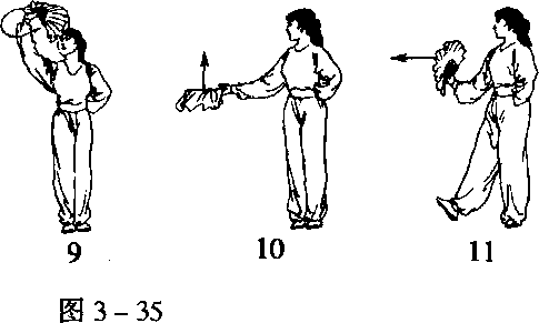 立扇,扇面朝前,手臂由屈到伸推出(图3-35 - 11)。