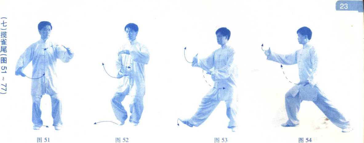 下相对成抱球状;眼看 左手。(图51 ,52)