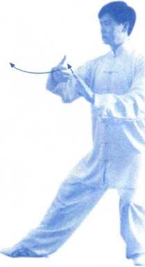 动作要点:分手、弓腿、松腰三者必须协调一致;弓步前掷时,两臂前后均保持弧形,两脚跟横向距离10?15厘米。