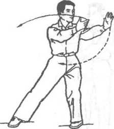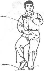 ② 设对方用右手向我面部击来,我即以右手粘刁其腕向右后方捋 带,趁势左手按击对方右肩背使其失去重心。此势为“右云手”的用法, “左云手”的用法与此相同,唯方向相反。