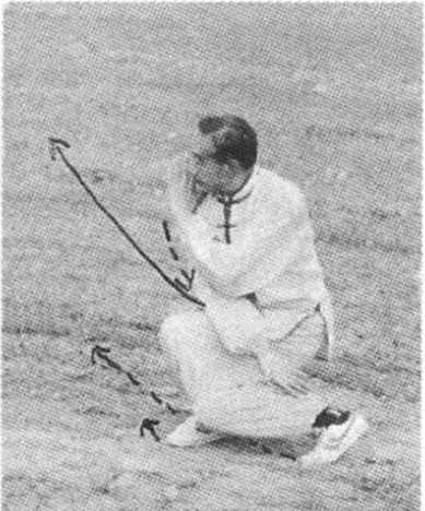 说明:这是蛇形的另一种练法,注意拧转、缩盘、舒展相 结合,并要全身放松,柔灵圆活,刚柔相济。余与前同。