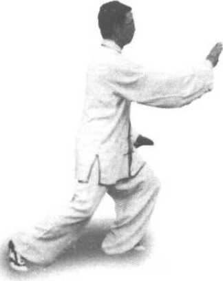 动作要领:(1)重心稳固在左腿,右脚跟步踏地时身体才能平稳。(2)立身 中正,松腰胯、垂肘、松肩动作轻灵、沉稳。
