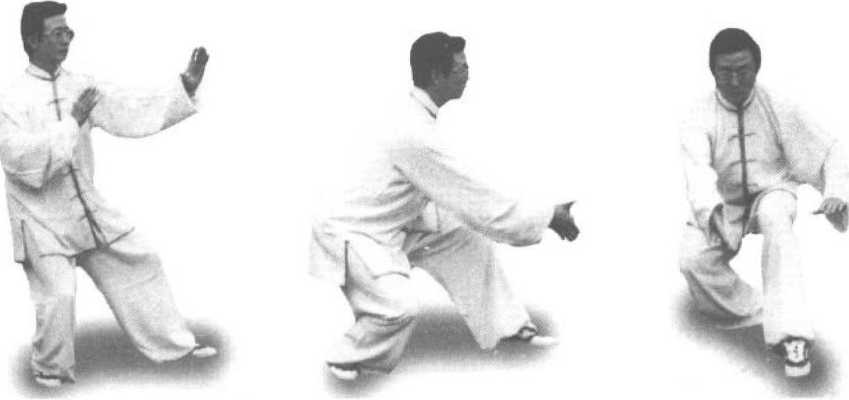 易犯错误:(1)俯身突臀,身体重心起伏太大。(2)左右歪髋,右膝关节过 于内扣。重心不稳。