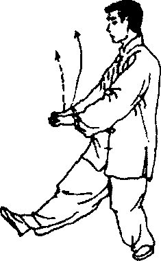 架臂打拳时,两臂内旋撑圆,有开弓之意。