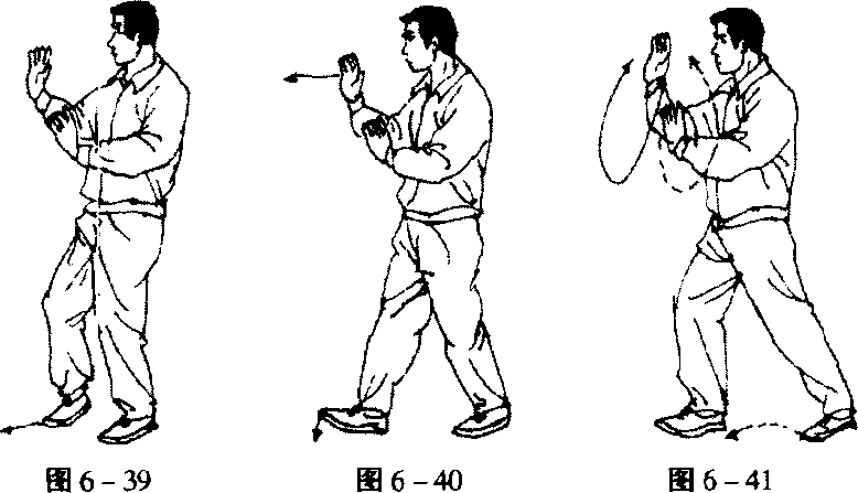 2 .以下与第三式“右懒扎衣”分动3、4相同,惟方向不 同,本动面对正西方(图6-41)。