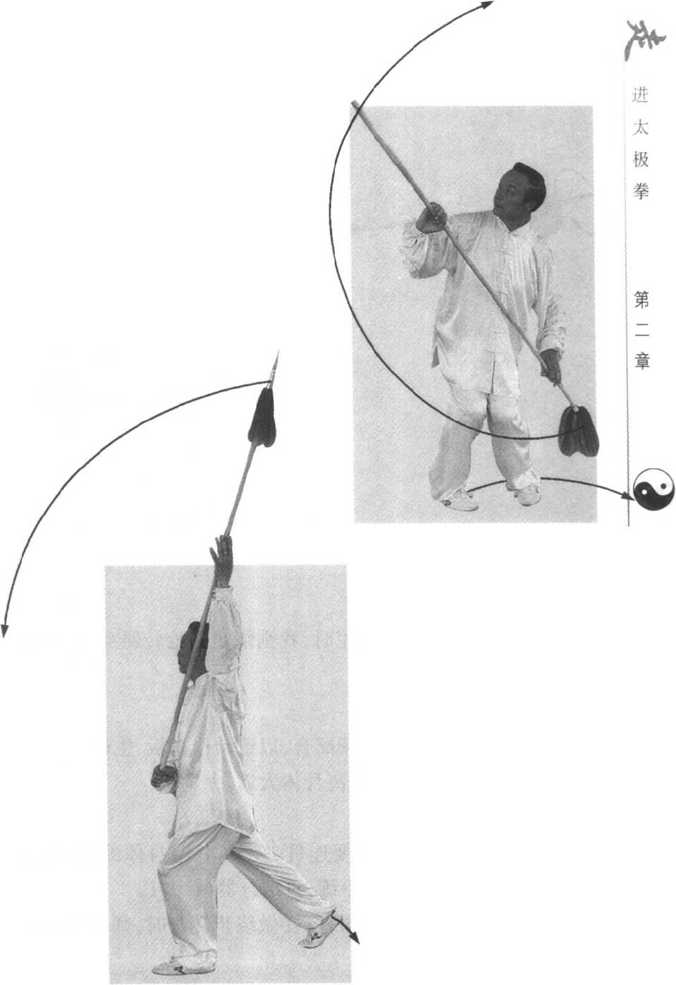 (2)可先单独练习双手滑杆,在做绕步转身时,师友可语言 提示练习者要枪杆贴身转。