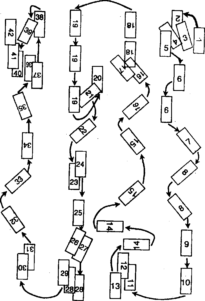 (一)学法1. 两前臂内旋,两掌边翻转,边平行分开,与肩向宽,掌心向 前下方;目视前方(图5-192)o2. 两掌慢慢下落至两腿外侧,松肩垂臂上体自然正直;目视 前方(图5-193)03. 左脚收至右脚旁,两脚并拢,脚尖向前,身体自然直立,呼 吸平稳均匀,目视前方(图5-194)o(二)教法提示旋臂按掌,太极式,收腿原无极式。四十二式太极拳竞赛套路动作路线(图5-195)