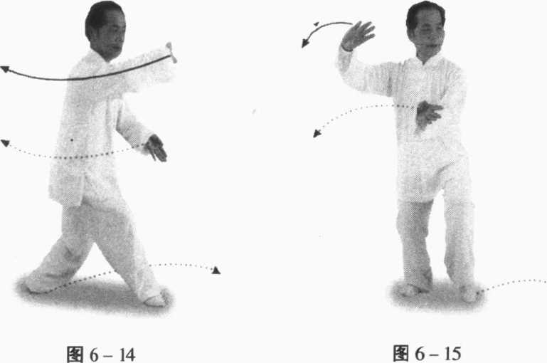 要 领:陈氏太极拳的云手练法很多,在此组合中采用了插 步 转身 插步的顺序,以适应表演及竞赛的需要,如有更 高的追求,可进行适当的调整。