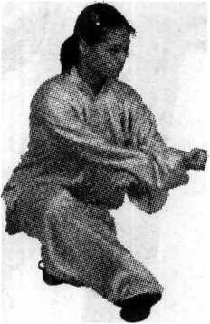 练习者可设想对方用右手向我胸部击来,我左手向下扣压 其腕s同时以右拳击对方腹部。