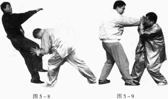 叱意六合拳4 Z %- > ZZ 匚) ZZ...4 .X插对方的左侧,制住对方的左腿,缩身下沉;右手下插在对方腰 间,左手屈肘上提外推护腮。双手与脚同时控制对方的梢节、中 节和根节,使对方处于被动局面(图5-9)。第二动接上式,左脚向前蹬劲;右手由下向上旋腰挑起,上身随重 心前移,催动对方,使对方失 去重心,后退不能,失重摔跌 (图 5-10)。