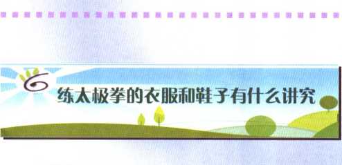 练拳时宜穿弹性面料或宽松点的衣服,这样有利于 气血畅通,有利于舒展随意地完成弯腰、下蹲、仆步、下 势、蹬脚、分脚、摆莲等动作。鞋子要求平跟、不滑、合 脚,不要太大或过紧,若有鞋扣、鞋带,必须扣好、系 紧。不能穿高跟鞋,以免扭伤关节。