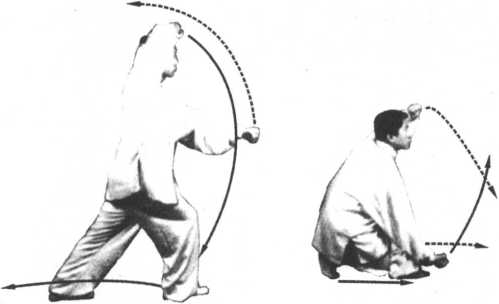 退步转体束身起手与进步展身劈出,上下连贯协调,以腰为 轴,一气呵成。