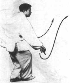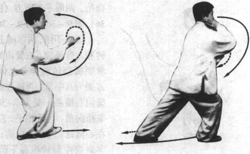 动作不停,两掌随上体右 转和左臂外旋、右臂内旋,左 掌顺弧翻转前伸至上体左前 方变为八字掌,再随左肘、左 膀向右横裹,变为掌心向上, 掌指向前,与乳相平,左肘靠 在心窝处,左膀尖向前;右八 字掌向左翻转抱裹下落收回 至洞中,变为柳叶掌,掌心向