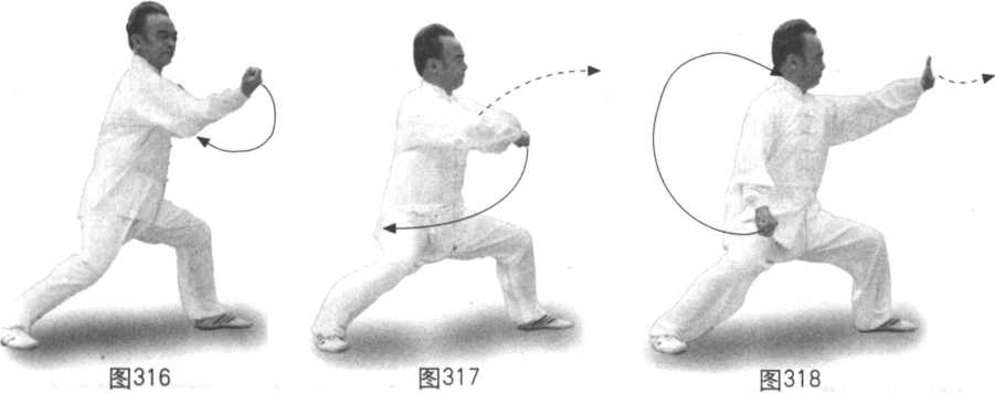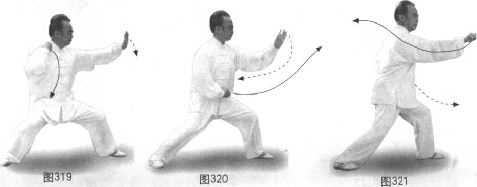 动作二至动作五练法及技击含义与前掩手肱拳同。(图316-321)