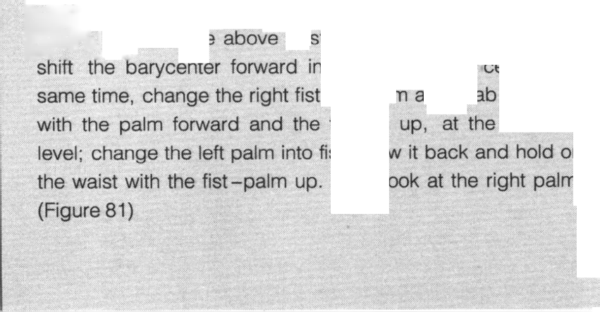图84七里竣嫌事梅花路六、上动不停。右拳收抱于腰间,拳心向上;左拳 向前平冲,拳心向下,高与肩平;目视左拳。(图84)(4) Keep the above action, draw the right fist back and hold on the waist with the fist-Palm up; the left fist strikes forward horizontally with the fist-palm down at the shoulder height. Eyes look at the left fist. (Figure 84)■ ■卿幕 ^ ^ ' ; * ?參錶二■....sevenlstar Mantis Plum Blossom Routine-;.v.^ ?:,;:^ ???:??痛 ...::