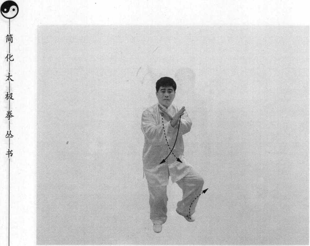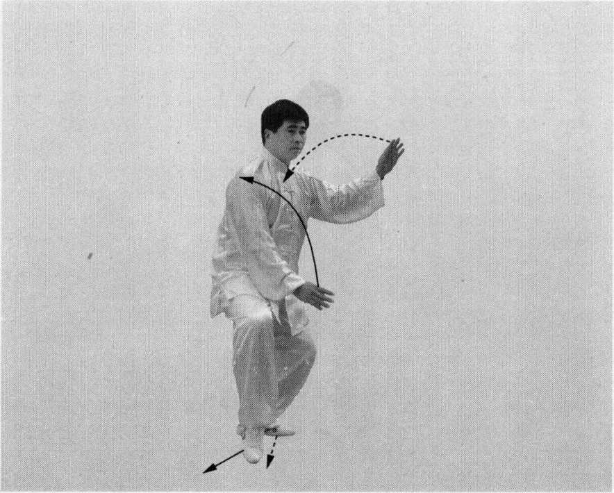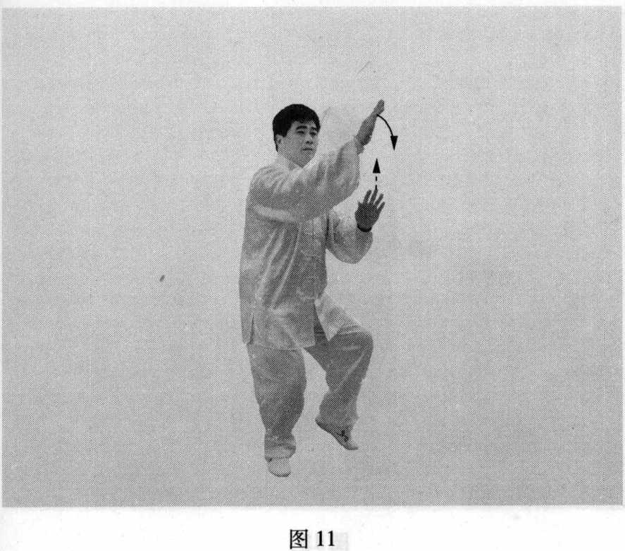 要领:肩部放松肘下坠,两臂抡圆,有仙鹤 展翅之姿,上下要协调配合。