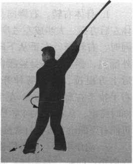 3. 图 6-6-28图 6-6-28上动不停。身体继续 向左转,左脚外摆,向左前方弧行迈进成外摆步;手、枪姿势