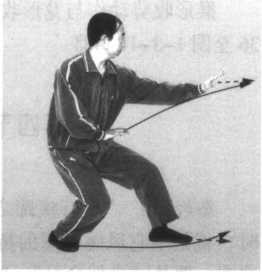 (1 )图1-4-9至图1-4-12动作要一气呵成,步要远,左 右提步要稳,体现“独立之形”的技法含义。并且臂借腿力, 上下协调。