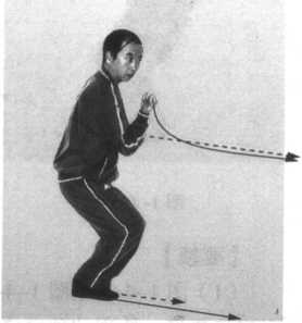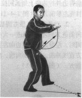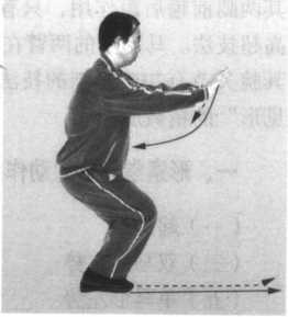 (3)两手虎口相对、向前冲击为“双马形”,借助脚力, 表现形意拳的刚猛沉实。