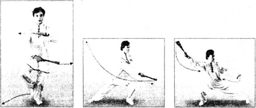 (4) 本势采自三十二式太极剑,要求上体保持正直,步法轻 起轻落。