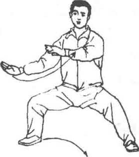 ② 此式每一个尽量大开的半圈动作,一变收缩为极小的半圈合 起的动作,要求感到遍体饱满,气势磅礴。