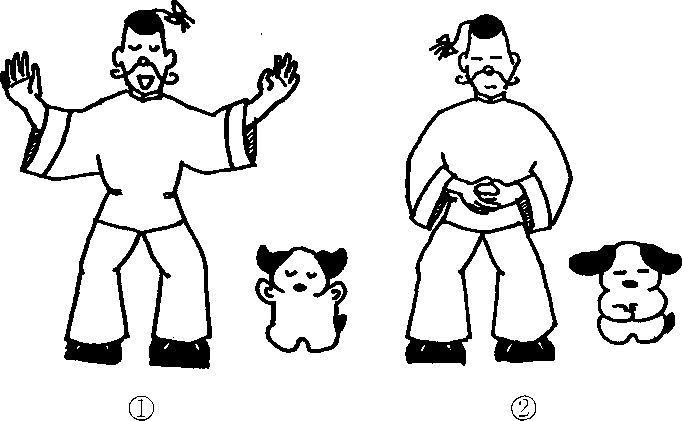 ①将交叉的双手从左右打开,慢慢放下;②在前腹部两手交叠(右手置于左手之上,大姆指轻微接触,作圆圈状)。t要点I ?要调整呼吸,气沉丹田。吨W盖整出③ ④③两手轻轻放开,慢慢垂于肋下,自然站立;④膝放松,身体重心移于右脚、再将左脚慢慢收回,膝伸起。3要点彳?结尾和开始是同样重要的。要静心仔细体味行拳后的 余韵。