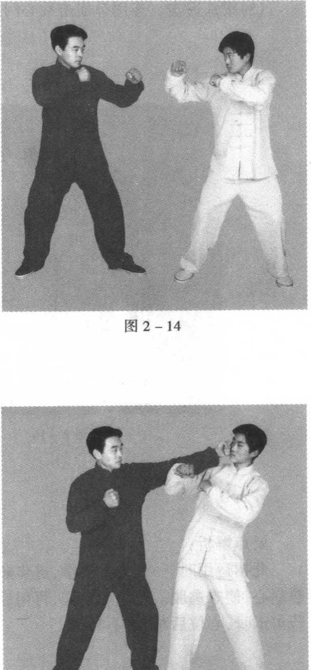 (2)我见机急 进,先用拳崩击敌 面门。(图2-15)
