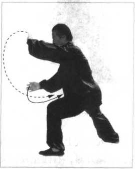 图 4-319图 4-319右手出劲变为顺缠,坐腕旋转,经身体右侧先向外展后向前,