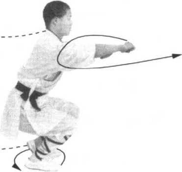 抬左脚向前上一 步,落于右脚内侧,成 左丁字步。同时右掌变 拳,与左拳同时向前冲 击,两腿半蹲。目视两 拳(图42)。