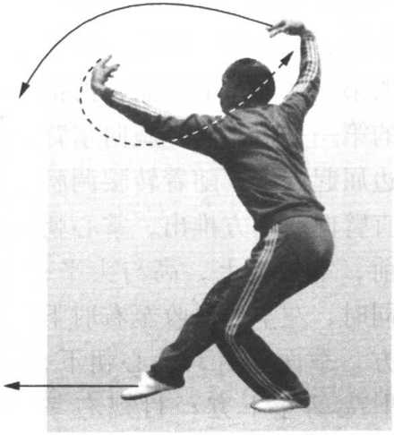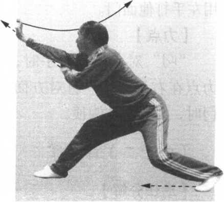 2 .接上动。右脚向前进半步,左脚跟半步,腿仍是右麒