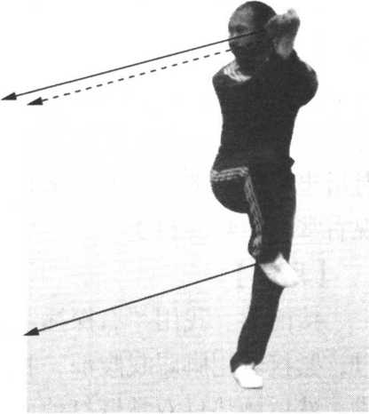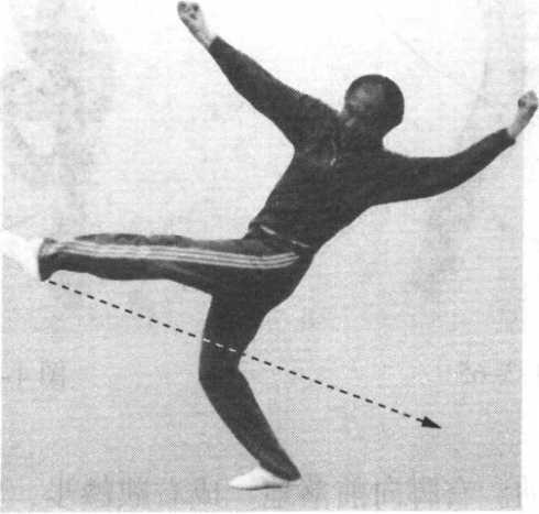踢对方裆部或小腹时,力点在左脚尖。击打对方面部时, 力点在右拳轮Q