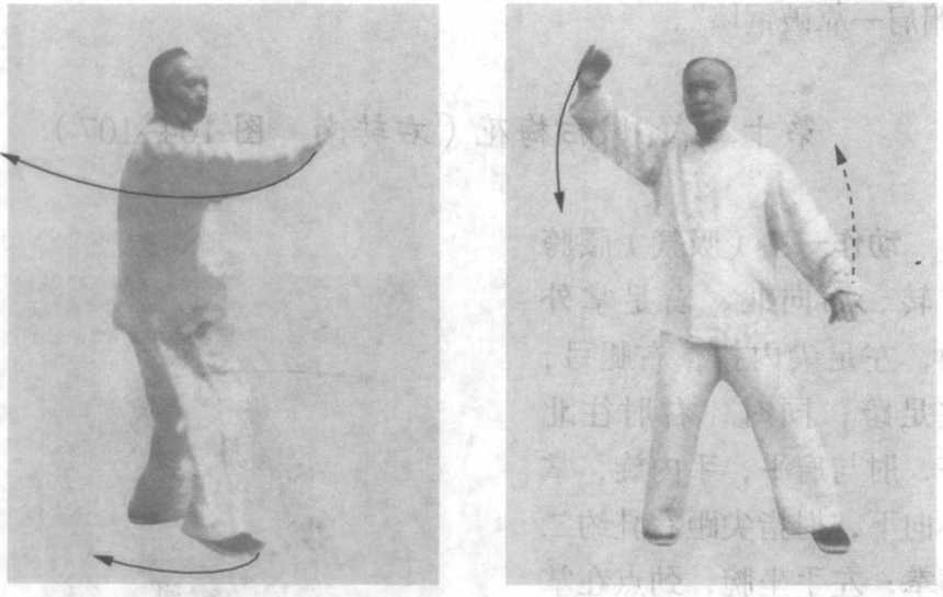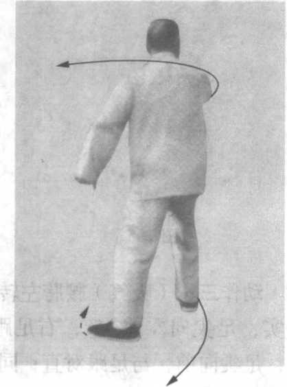 1 .转身要圆转,不僵不滞,右足跟贯劲向右后扫转,要一 气呵成,不可停断。足到定点踏实,要如钉入木,极为牢固。
