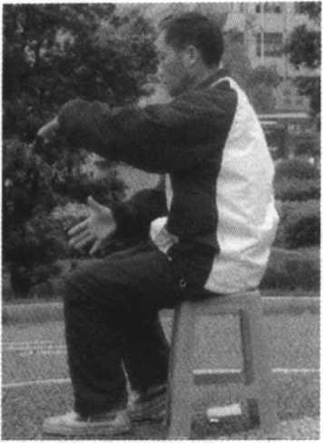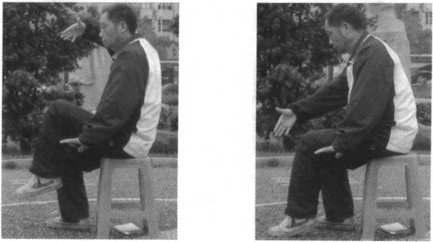 要点:提手时,不要耸肩吊肘。定式时,要向前向 下,松腰,右胯不要外敞。