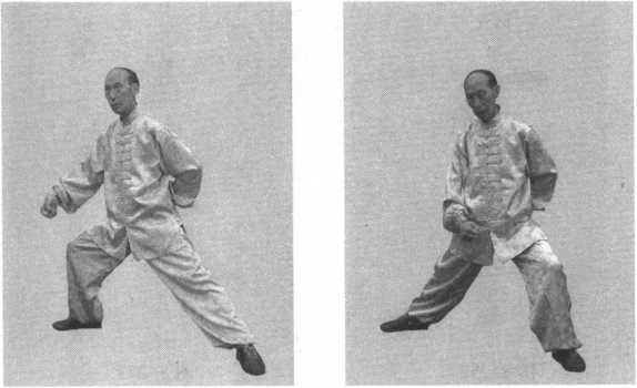 诀日:落拉铺掌破采拿,身正提腰肘拳发。左右旋打连环肘,提捶内裹指裆下。接上式。右脚外摆旋落后,弓箭步成;右拳下落铺地后拉变 捶,上提旋内裹向前下栽于裆前,拳背朝外;重心同时移至左 腿,成左弓右蹬步。此谓指裆捶势(图8-254、图8-255)。图 8-254图 8-254图 8-255图 8-255图 8-254图 8-254图 8-255图 8-255【要领】此势和上势连贯性强,右掌随摆脚同时行动,脚落地时肘捶 已到,重心已成。右拳指裆砸击时,拳要沉实,全身劲沉蓄。