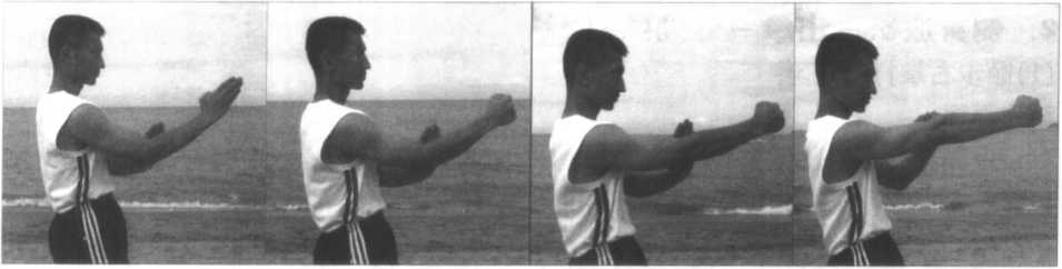 (图1—68、69、70、71)为“右曰字冲拳”的另一个角度示范。