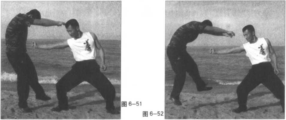 我突然的爆炸性打击必会将对手打得双脚离地而飞起(图6-51);