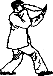 用途:当对方用左直拳击打我面部时,我用右臂上挑 其来拳小臂,同时用左掌砍击对方颈部,同时上步丁踢对 方小腿胫骨,对方向后退步,我随即用左爪击对方面部,同 时用右腿斜踹对方腹部。