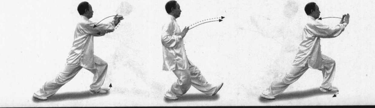② 按撑时,两掌要平行向前,沿弧线向前推出。