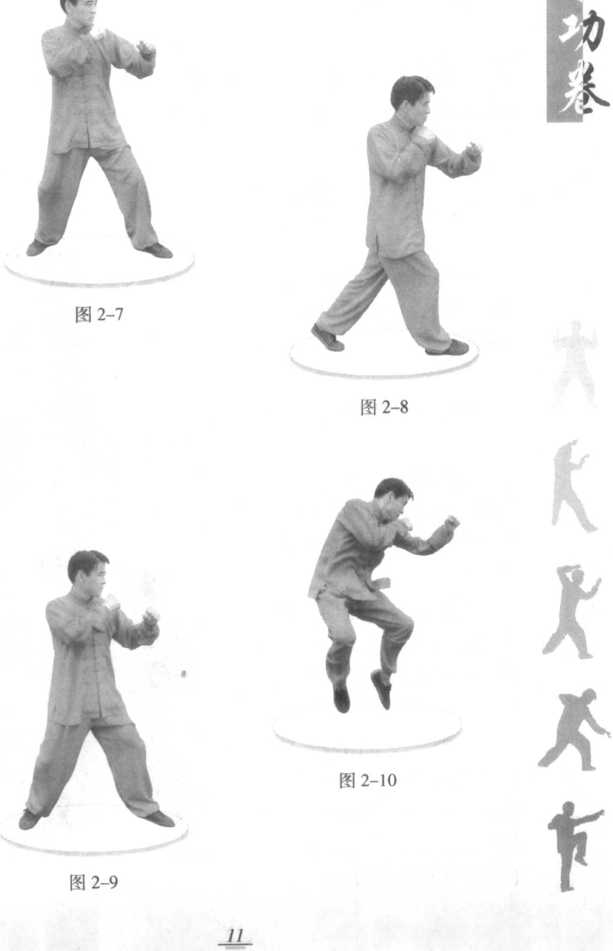 上步指后腿先动,越过前腿,带动身体,向前进势,步幅 大,进距长。(图2-7、图2-8)飞步也叫跳步,指双腿同时屈膝蓄力,然后向上、向前跳 进,超越原位,落至前方。速度快,突然性强。(图2-9.图 2-10)图 2-11图 2-11图 2-12图 2-12图 2-11图 2-11图 2-12图 2-12