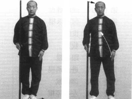 图1图1图2图2棍立在身右侧,梢段向上,把 段向下;左手自然下垂在左胯 旁。眼平视正南方向(图1)。