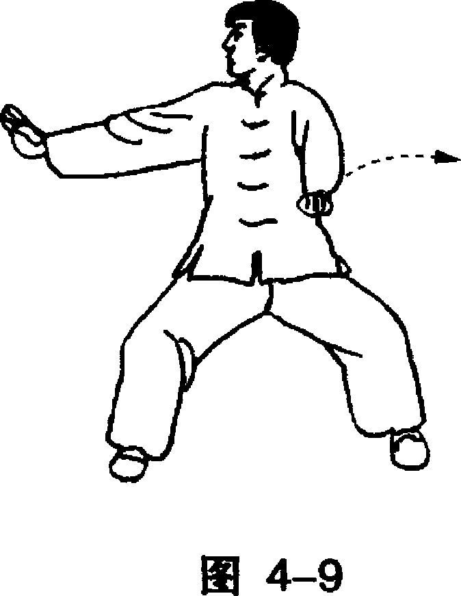 右,掌指向上。目视右掌方 向° (图4-9)