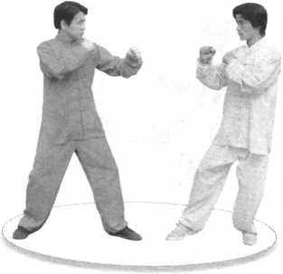 (2 )我见机急进,先发左势蹬山腿,踢敌身体。(图7-70)