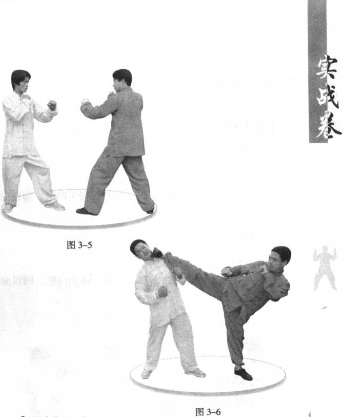 (2) 我见机右腿速出,猛力跺击敌头部。(图3-6)