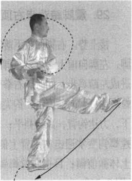 才 侧,掌心向上;左掌随即向前推出,力达掌根,掌心向前, X 高与胸平;目视左掌。(图3-43)