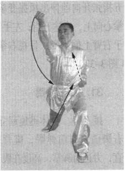 方向前穿出,掌心向上,高与面部平,力达掌指尖;目视右