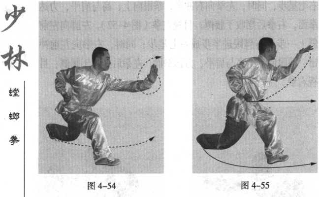 向前推出,手臂略屈;目视左掌。(图4-54) 四