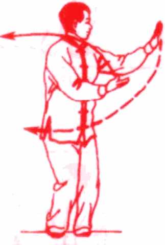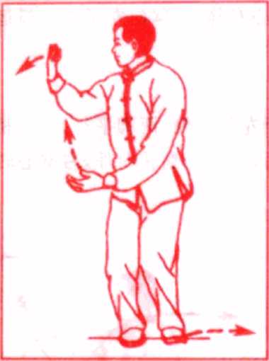 大全 ZHONGHUA TAIJQUAN DAQUAN大全 ZHONGHUA TAIJQUAN DAQUAN上体继续右转,左脚顺势向左开步,当两掌运转至最右侧