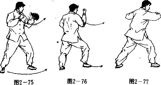 格斗顼备势站立,(图2-75)右脚前上一步成为马步,同