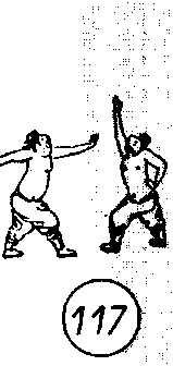 当右掌下沉。右腿坐实时为合、为蓄、为吸。当左腿提起 时为开、为发、为呼。(图364.365)